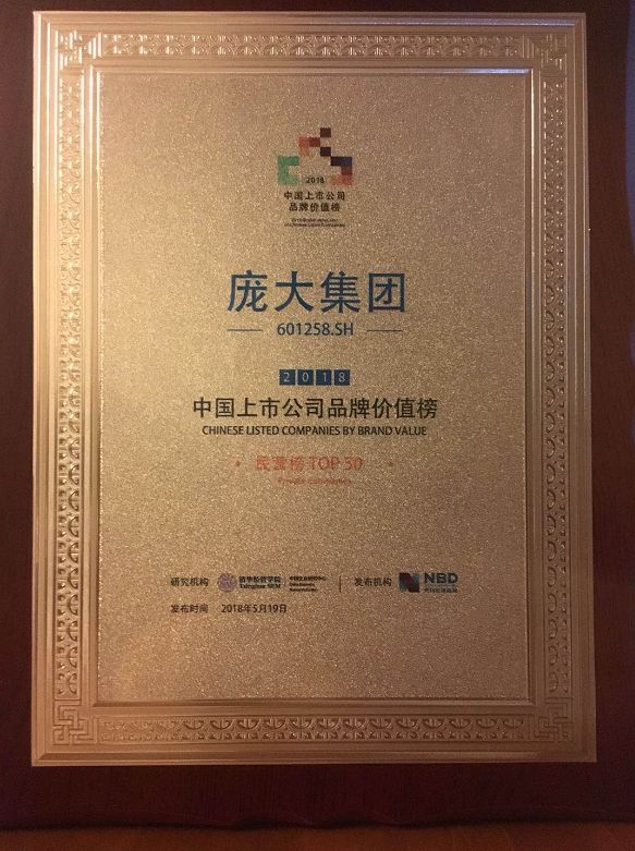 2018中国上市公司品牌价值榜揭晓 庞大集团登陆民营榜TOP50