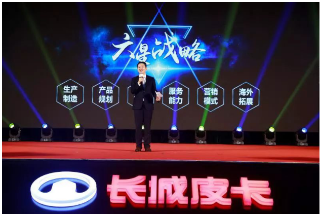 针对做“中国第一,世界前三皮卡品牌”的长期愿景和目标,长城皮卡战略再升级,推出“六星战略”,即从生产制造、产品规划、渠道建设、服务能力、营销模式和海外拓展六大板块全面发力,打造领先于行业的体系竞争力。