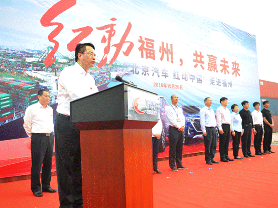 10月26日上午,在21世纪海上丝绸之路的前沿阵地——福州市江阴港,“北京汽车·红动中国”福州站活动成功举办。来自福建省国资委、北汽集团和福建交通集团的相关领导、员工代表近百人,共同见证此次活动,共同