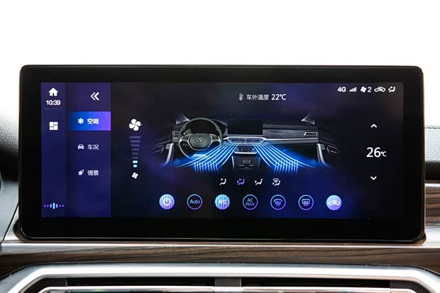 智能恒温双区自动空调,配备后排出风口,支持拥堵、宝宝、雾霾3种可自定义情景模式,一键可设定最适宜的车内空气环境,静享温控SPA。同时,冰蓝色车内氛围灯更添浪漫、温馨气息。