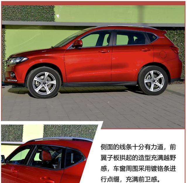 来到哈弗H2的侧面,它的线条表现的非常流畅,车顶行李架也给整车带来不少的越野气息,虽然只是一款小型SU,但是它的气势已经达到了。五辐的轮毂很是运动,简洁的造型十分大气。