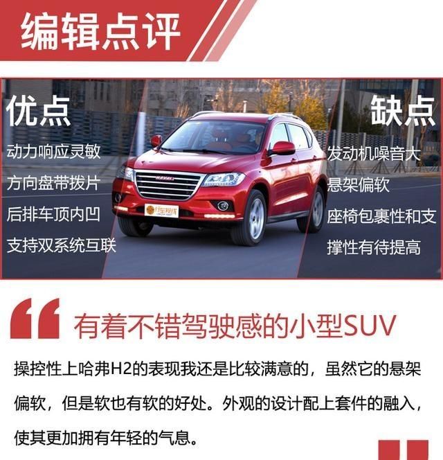 总结:哈弗H2创享版给我的感觉还是不错的,在小型SU中可以说是印象深刻,满足年轻消费者对于小型SU购车的需求,带有陡坡缓降的它领先了对手不少。它的造型简洁而又不是通俗,很容易让人接受。