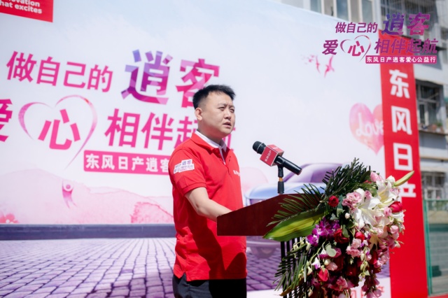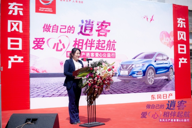 在孩子们表演完节目后,活动正式开始,精诚学校的校长荆亚红女士和东风日产新疆区销售督导张磊先生分别上台致辞。在致辞中,荆校长对东风日产为学校孩子们所带来的支持表示了感谢,同时张磊先生也对学校和孩子们表达了东风日产的美好祝愿。
