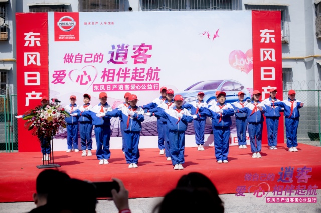 “做自己的逍客,爱心相伴起航”东风日产逍客公益行活动于14:30分正式开始。本次活动第一个环节是孩子们为在座的所有人表演的合唱《感恩的心》