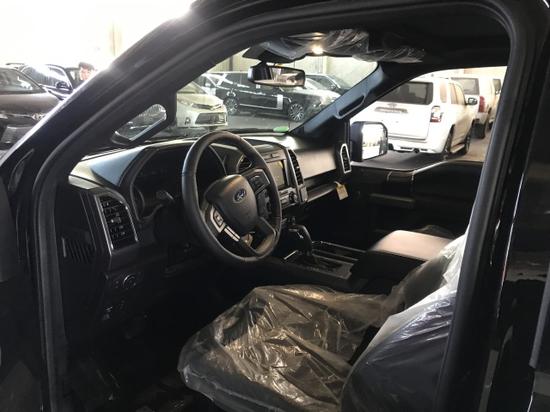 福 特猛禽F150内饰采用独特的中控台和门饰板面漆和真皮包裹的方向盘。中控台部分辅以银色饰板装饰,六指针仪表盘的设计有些后工业时代的复古风格。采用带电冷热功能的可记忆式皮革座椅,头枕四向可调,搭配铝饰条和黑色钢琴烤漆内饰。可电动升降的后窗带隔板和电热除霜功能。