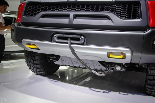 长城炮有两种设计,一种是偏向家用舒适性的设计,在外观上要更素一些。另外一种就是我们在车展上拍到的这种经过厂家改装的越野版本。长城炮越野版本给人的感觉十分凶猛,特别是宽大的进气格栅配上大面积的银色装饰面板,霸气侧漏!粗壮的涉水喉,前杠的绞盘和拖车钩,都可以看出长城炮就是冲着专业级越野来的。这些原厂装备大大提升了车辆的脱困能力和救援能力,关键是还能顺利通过年检。