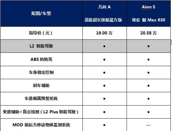 主动安全配置:几何A更胜一筹,L2 Plus智能驾驶领先Aion S