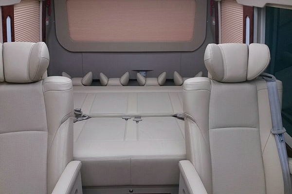 丰田考斯特改装商务车,从外观的设计上来看高大的车身端庄大方的设计,耀眼的米黄金色,闪耀着最高贵的色彩。丰田考斯特改装商务车车身增加彩色的中线,与这金色的车身颜色相搭配也算是霓裳羽衣,尊贵而独特。丰田考斯特长x宽x高7005mm*2040*2645,A1本准驾。