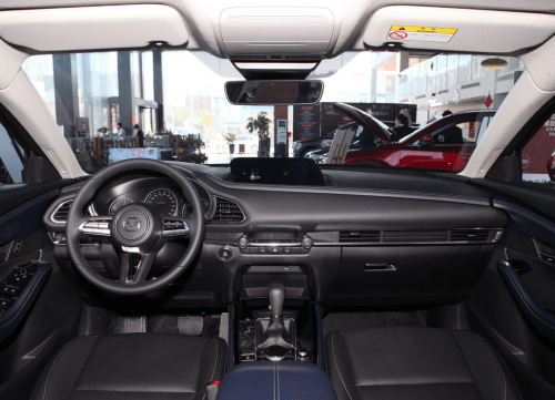 内饰方面,MAZDA CX-30采用简洁开放的环舱设计,以主驾驶为中心的对称环抱式布局,让驾驶视野一目了然。中控台以软质材料进行包裹,极具手工感的缝制工艺与皮质的大面积运用,搭配镀铬金属装饰条的点缀,也使得CX-30拥有了同级别车型中少有的领先质感。中控台采用8.8英寸悬浮式中控屏幕 ,搭载了全新的多媒体交互系统,加上多功能的方向盘和液晶仪表盘,整体科技感十足 。