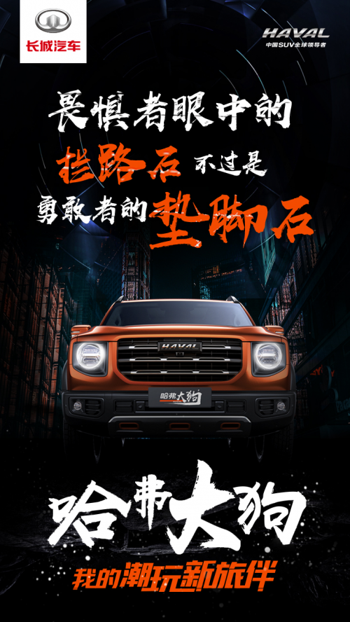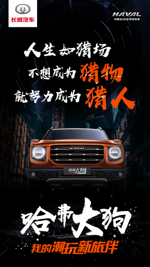 “大狗”这样的名称本是源于生活、源于自然,以自然、内心的力量化作灵感的源泉,让自然美学的设计感与产品命名融为一体,展现出主观与客观相融、自我与自然碰撞的独特之美,这便是心潮力量美学,这也是哈弗大狗的消费者所具备的独有特质。
