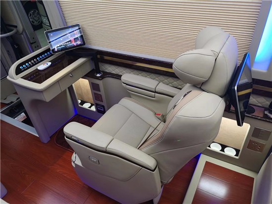想具备硬汉气质,除了“高端”的造型之外自然少不了内饰的支撑。2019款丰田考斯特内饰以棕色与米色为主,再配以桃木,在沉稳中多一份金属质感;而其配置的舒适耐用的电动真皮座椅具有良好的支撑力,可调节的后排靠背倾角极大程度的提高了乘坐时的舒适性;前后排头枕的科学设计对颈部起到良好的支撑,尤其对于长途跋涉的驾乘人员来说无疑是最大的享受;
