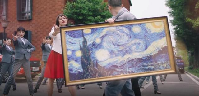 MV中有一个细节打动了我。在两位主角正逢恋爱结婚到生子的这一主要人生关口,梵·高的传世名作《星空》突然闯入了画面。