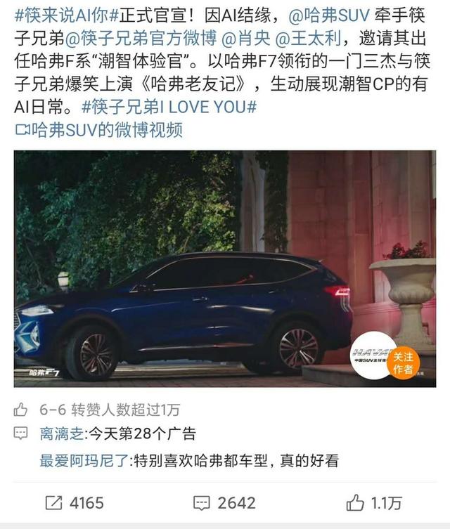 在推出《I Love You》MV后,长城汽车还联合筷子兄弟打造了全新TVC《哈弗老友记》,将哈弗F系三款产品的差异化定位和智能亮点,在趣味“神剧情”中展现得淋漓尽致。