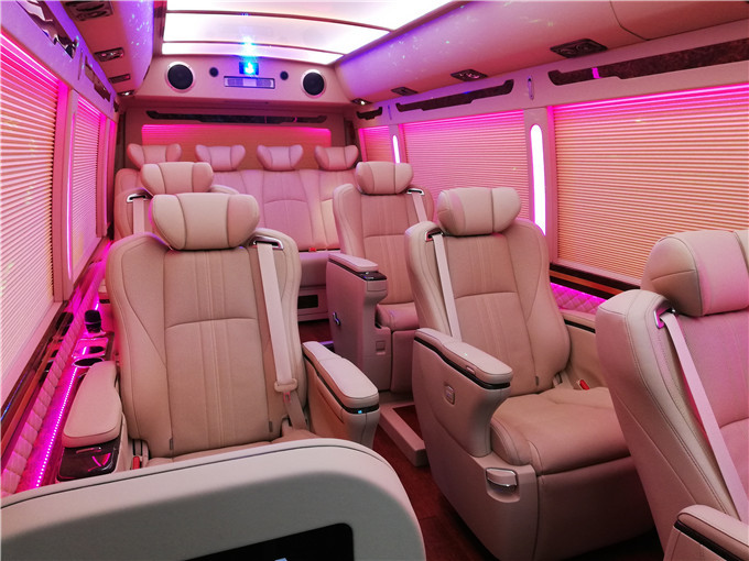 丰田考斯特改装商务车,从座椅的改装上来说,对于驾驶席以及副驾驶的座椅改装我们可以将座椅加大加宽加厚,同样也可以增加桃木扶手。丰田考斯特改装的每一步都是为了增加乘驾人员的舒适度。对于乘客席的座椅改装,我们同样也有着不同的选择,真皮座椅织物座椅亦或是丝绒座椅,我们根据自己的选择进行设计,其实最值的一说的就是360度可旋转的首长席座椅。这一款座椅在满足大家舒适的需要的时候可以随心旋转面向不同的角度。这样的效果更能够方便乘坐人员在乘车旅行中的交谈。