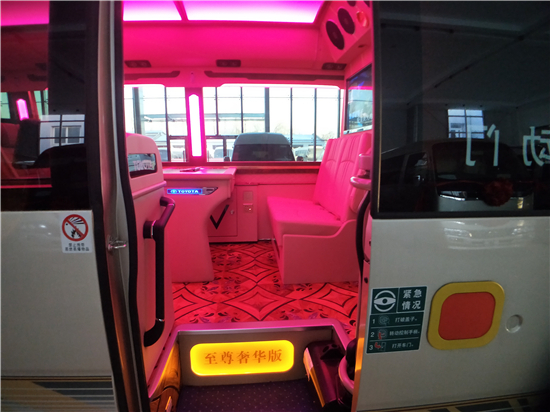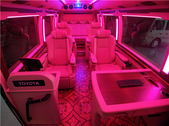 丰田考斯特改装豪华商务车秉承了丰田,“舒适是动力,安全是第一”的概念,车内为客户提供了舒适的乘坐空间与静音优雅的环境,能不仅让客户体验豪车的舒适,还能让客户享受在车内的乐趣。