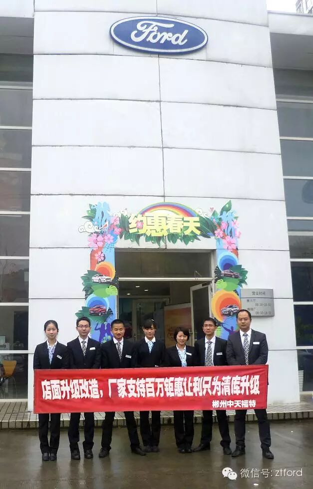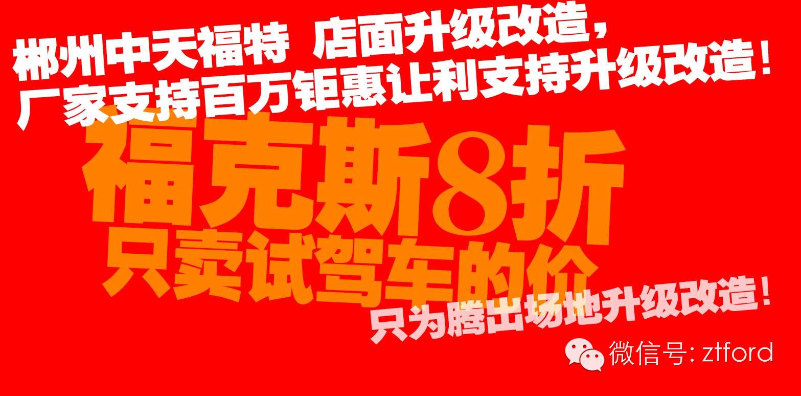 “3月28日,郴州中天福特七年一遇,店面升级改造,厂家支持百万钜惠让利清库活动,总经理亲自签售,福克斯只卖试驾车的价,限时限量先到先得”