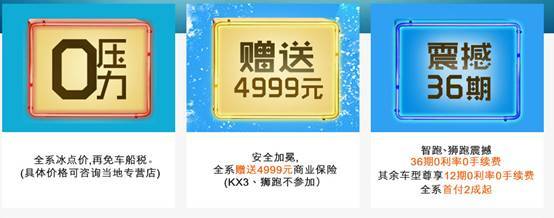 价税无忧:厂家直销抄底,全系给力价格,全系再免车船税;“险”胜一筹:全系赠送超值商业保险;