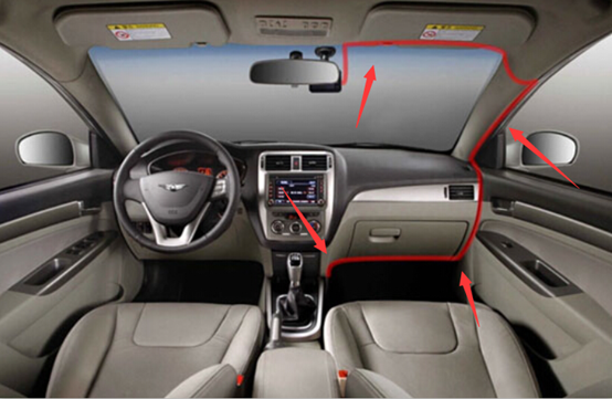 2、沿着车内上沿线塞入缝隙