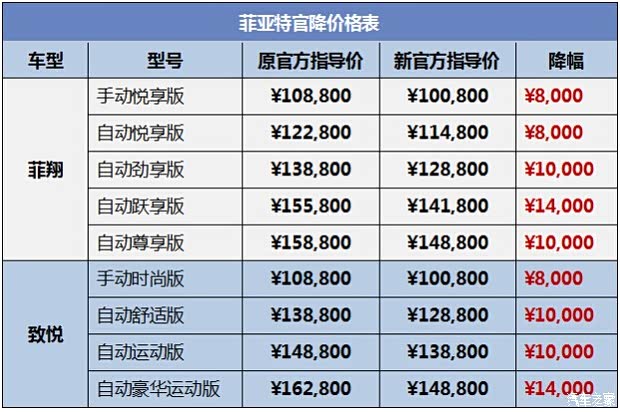 官降之后,菲亚特菲翔、致悦两款车型的性价比优势进一步凸显,“大牌”座驾更加亲民。其中,菲翔自动跃享版和致悦自动豪华运动版均降价14,000元,让顶配车型不再高高在上,更多的豪华配置都能唾手可得。而热销的车型——菲翔自动劲享版和致悦自动运动版也均降价10,000元,尽显菲亚特的降价诚意。值得一提的是,致悦自动运动版更是凭借帅气的运动套件和强悍的动力性能,成为13万区间内唯一的运动爆款“小钢炮”!