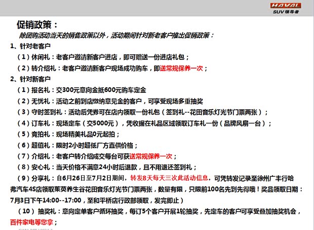 【太平洋汽车网 徐州商家活动频道】徐州广丰行7月2日“哈弗冲刺年中任务,厂家限时团购90分钟”活动开始啦!