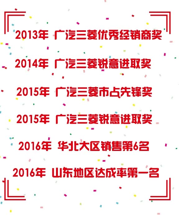 感谢有新老车主对荣捷三菱的支持,2016年获得山东省销量达成率第一名的优秀成绩,为回馈新老客户的厚爱广汽三菱主机厂特支援荣捷三菱在2月26(周日下午2点),以行业内前所未有的力度开展广汽三菱全系车型购车大型厂家直销会,在购置税、0利息购车、按揭提车便利性、售后保养等方面启动超值活动,活动力度超越客户期望,优惠超值不敢想象!