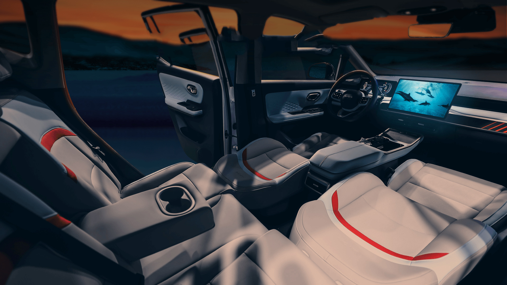 新车内饰造型很有新能源车型的味道,简约时尚,极少数的物理按键,大块屏幕解决车内所有的操作。该车轴距达到了2750mm,给车内提供了非常宽敞的乘坐空间。