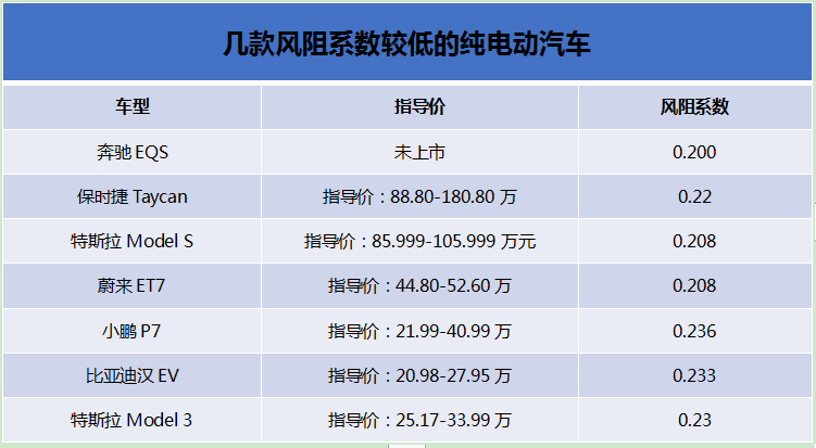 也因此,市面上许多纯电动汽车都会在与风阻息息相关的空气动力学上狠下功夫。