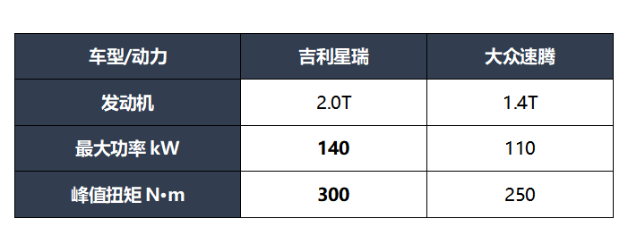 大众速腾则有两款动力总成可供选择,一款搭载1.2T涡轮增压发动机,匹配5速手动或7速双离合变速箱,最大功率85kW,峰值扭矩200N·m;一款搭载1.4T涡轮增压发动机,最大功率110kW,峰值扭矩250N·m,匹配7速双离合变速箱。速腾这套动力总成比较保守,1.2T的排量对于如此大的车身有点“小马拉大车”,动力不足也劝退了不少对驾驶乐趣执着的人。网上也有消息称,新款速腾有望换装1.5T涡轮增压发动机,最大马力将来到160Ps,不过该数据相比星瑞还是有一定差距。