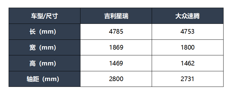再来看看吉利星瑞,外观上呈现科技风,秉持最新的吉利4.0设计语言,前脸基于宇宙回响进气格栅进化而来,中网内部采用了竖条纹的能量音弦设计,在保持立体感的同时,较为沉稳大气。6月上市的时空版车型,还提供了“苍穹灰”专属车色和极夜黑外装饰件,不仅看起来酷炫十足,也提升了精致感和品质感。相比起速腾的老少皆宜,星瑞在时尚品位上更胜一筹
