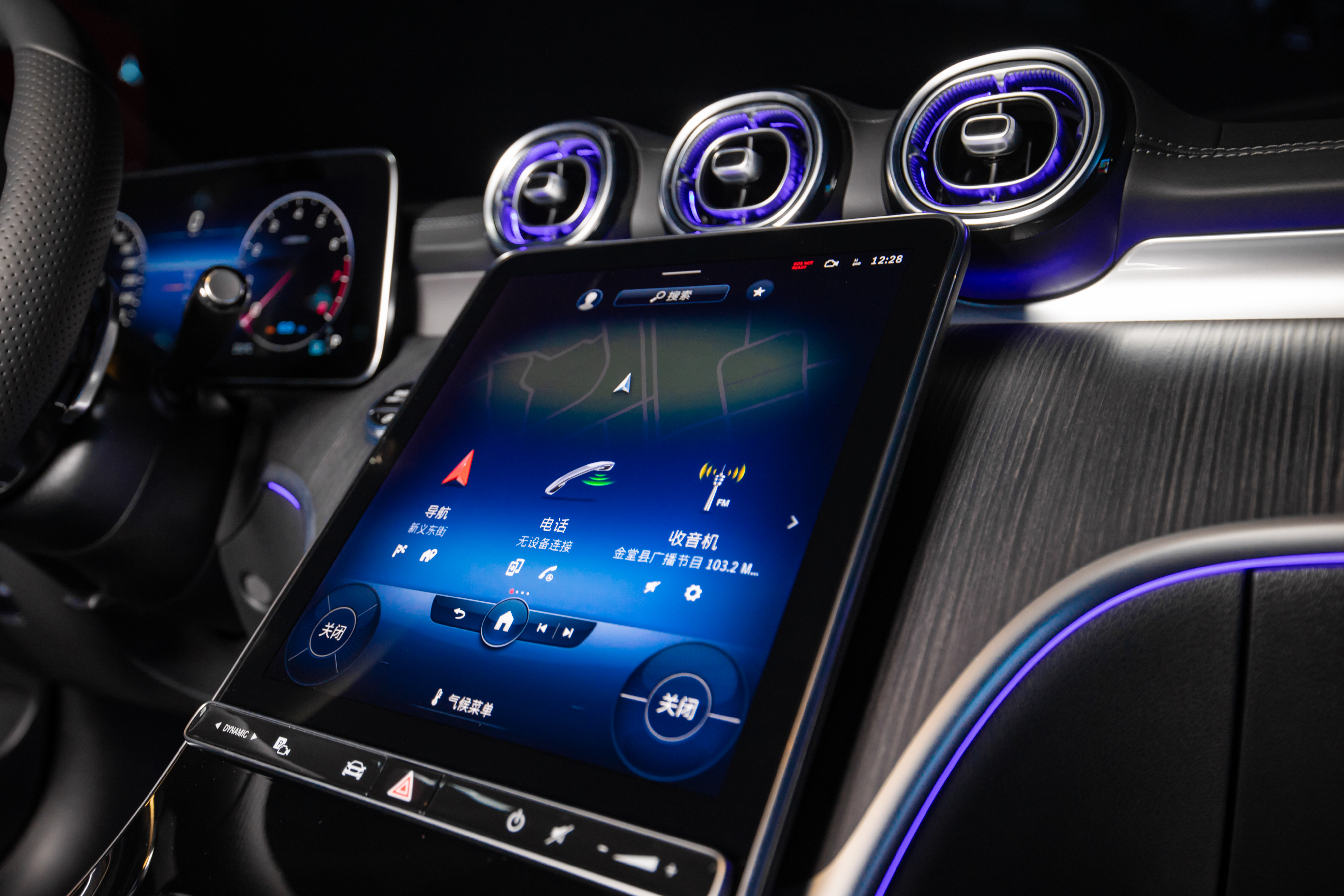 全新长轴距C级车全系标配12.3英寸数字仪表屏和11.9英寸中央触控屏,“双大屏”拥有超过200dpi的高清分辨率,画质清晰度可媲美顶级专业电脑显示效果。中控屏支持多点触控,其可视面积较上代车型增加一倍。不仅如此,第二代MBUX智能人机交互系统进一步优化自然语音交流,一些常用指令的激活无需说出唤醒词“你好,奔驰”,如只需说“接电话”即可接听来电;更可以根据内置“星展产品问答”解释车辆功能,并提供最新生活资讯。“实景穿越导航”可将虚拟的指示标志、道路信息与实际道路环境相叠加,显示在中控屏上,再结合3D地图、动态模型以及清晰的文字和立体图标,使导航指引更加易于理解。此外,平视显示系统的面积是之前的11.3倍,超大画面涵盖了车速、导航、限速提示、驾驶辅助等信息,呈现出强烈的未来科技感。