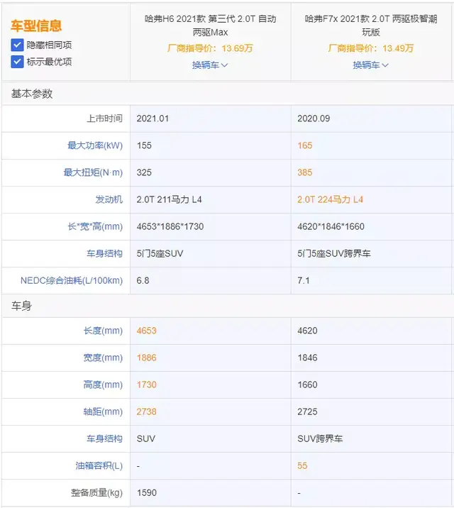 冷门车型推荐,哈弗F7x对比H6,更个性化的性价比之选