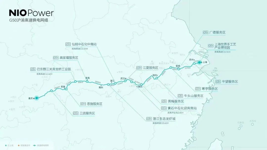 目前蔚来换电站数量已经达到了730座,并且明年预计将达到1300座。渝沪高速上完备的换电站网络布局,已经足以支持渝沪两地及沿线的蔚来车主们放心畅游,其余地区的换电站规划与建设也将快速趋于完善。而这些便利,显然是特斯拉所不具备的。