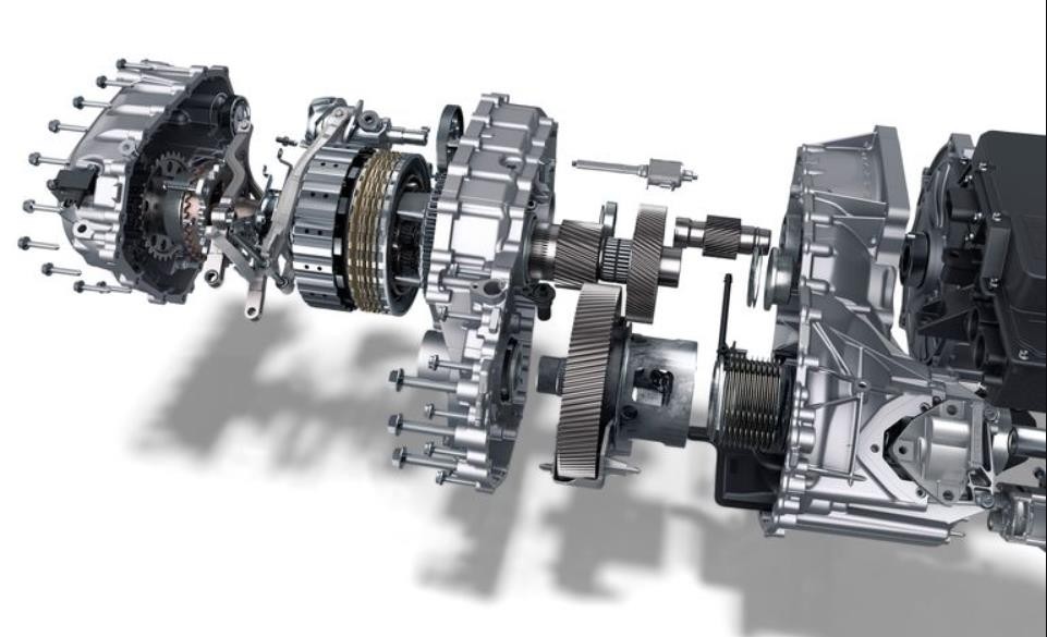 对于高速公路来说速度显然足够,但对于保时捷这样的品牌来说,车主也有下赛道的习惯,因此要解决极速问题,保时捷与ZF采埃孚联合开发了两档变速箱,核心是一个行星齿轮组和两个离合器,用于处理转速比率交换,齿轮传动比很大,二档传动比大约是一档的一半,换档点发生在80km/h左右,优势是提高加速能力和极速。