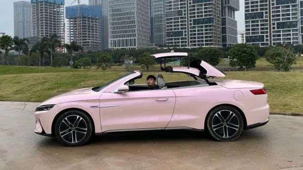 虽然它不量产,但也能提供一些改装方案供改装圈参考,汉EV敞篷版与普通版在设计语言没有区别,最大的亮点便是它的硬顶敞篷结构, 加上这满身的粉色涂装,试问哪个女孩不喜欢?据改装者透露,这台车所有的地方都是纯手工打造,包括钣金工艺也都是一锤一锤打造出来,非常仔细。