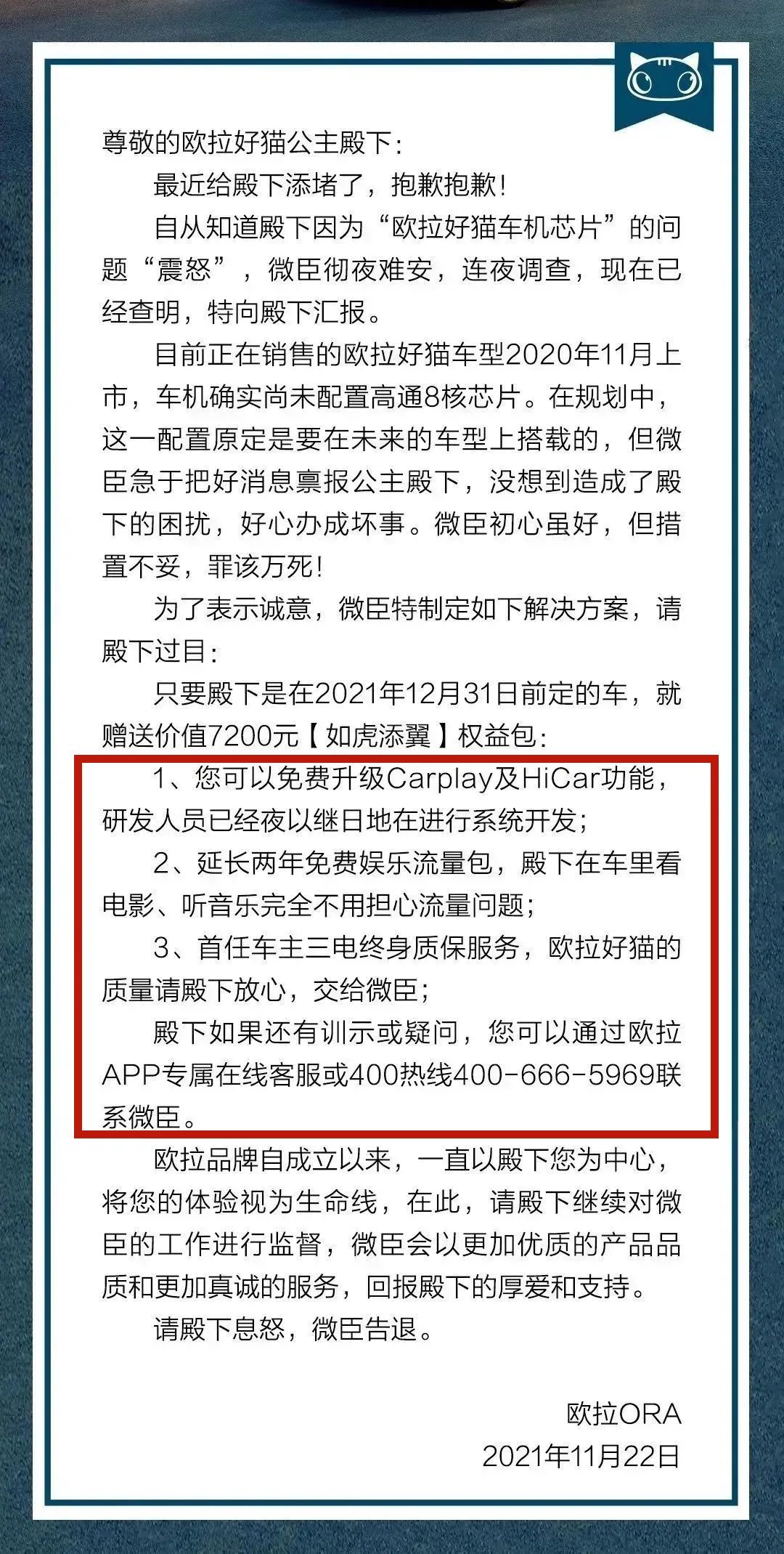 如果你是欧拉好猫车主,相信看到这些权益都并不陌生,因为除了万元折现权益之外,这些赠送的各种免费升级、流量提升等权益,大部分也都是欧拉此前发布的声明提到的项目,至于车主买不买单,欢迎你们都来评论区说一说。