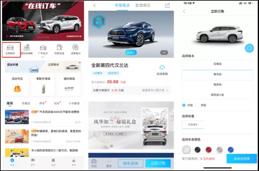 我们也了解到,广汽丰田现在也在推行“线上订车服务系统”, 能直观显示城市及单店可售资源的线上购车平台。同时,针对此次全新打造的数字化购车新模式,广汽丰田还同步推出“线上下订-便捷、线上排队-公平、流程可视-安心、交期明确-透明”四大服务承诺。