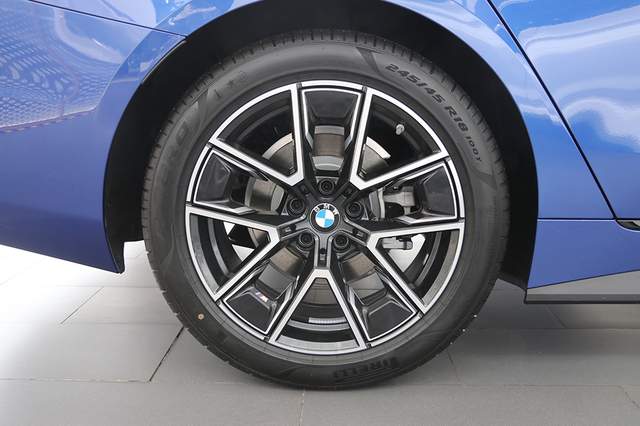 实拍车型配备了18英寸双辐式双色轮圈,有着不错的运动效果,上面还印有M的标识,配合前后外扩的轮眉,凸显不错的力量感,并使用马牌轮胎,规格为245/45 R18。