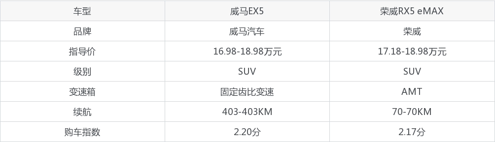 以上就是为您带来的威马EX5和荣威RX5 eMAX的对比选车内容,看完后您会选择哪一款呢?