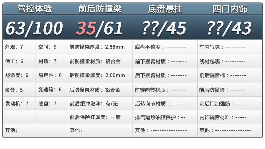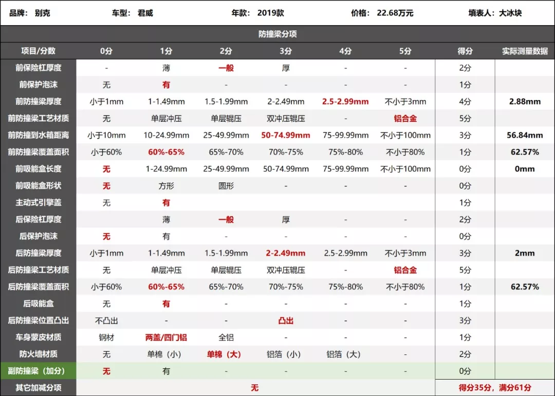 2019款别克君威防撞梁评分