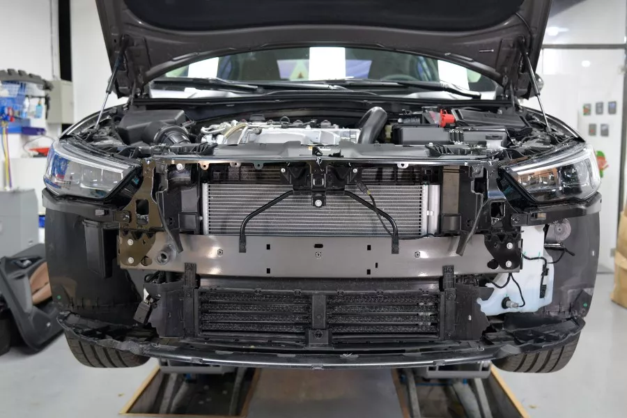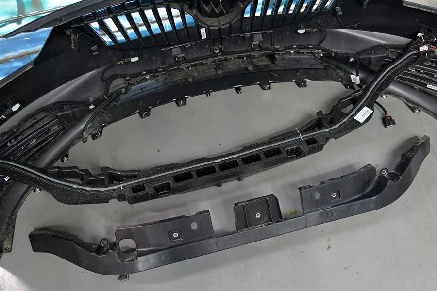 可能细心的小伙伴会发现,这辆君威的前防撞梁与我们之前拆过的那辆迈锐宝XL,无论是用料还是结构,都非常相似。并且都带有一半的主动式进气格栅。
