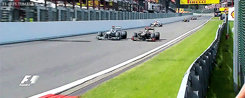 毕竟F1赛车在低速弯时速也不会低于100KM/H,一不小心就容易导致失控。然而,F1赛事所用的轮胎为全热熔胎,漂移会大大地增加轮胎的磨损程度,增加了进补给站的附加时间消耗,这对于车手是非常不利的。