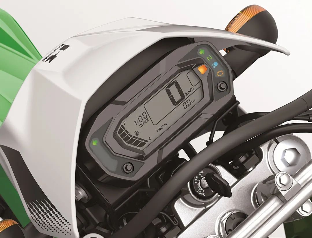 为什么说KLX230是一辆注重全面发展的两轮摩托车呢?首先从整车重量上来看,134千克的质量绝对可以让你在林道间穿梭自如,万一遇到倒车的情形也可以轻松扶起。另外,别看坐垫高度达到了885毫米,骑士坐上去以后,避震会下降很多,身高170厘米左右的朋友们完全可以单脚落地。