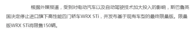 给大家讲个鬼故事,WRX STi停产啦!