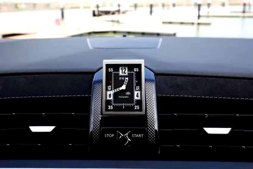 此外,还有车辆启动时自动翻转180°的由B.R.M提供的中控表。按下点火按钮后,钟表便会自动翻转出来,带来满满的仪式感。
