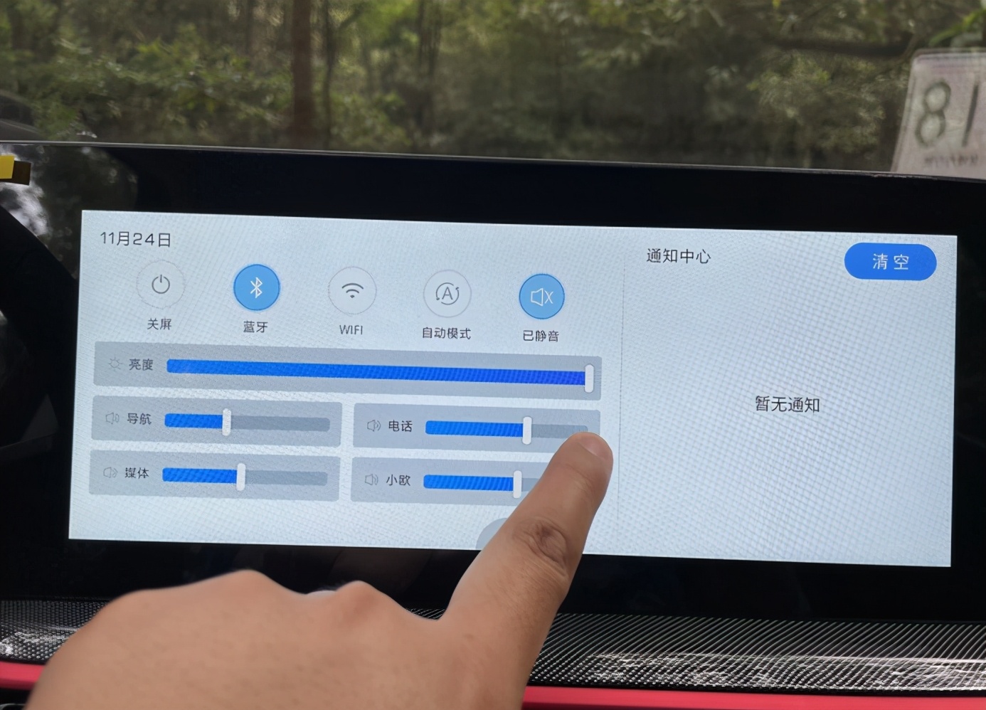 屏幕下滑则是快捷菜单,在这里你可以直接开启wifi、开启蓝牙或者是调节屏幕亮度、调节导航和媒体音量等,和我们手机的操作逻辑很像,非常方便。