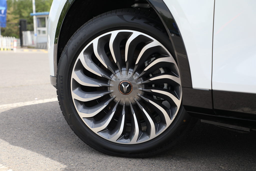 不单单是D柱上的英文标识,回旋镖造型的D柱就好似私人游艇的侧面照,上下双层的设计清晰明了又不乏高级感。20英寸的轮毂为全系标配,多条幅的设计不难在许多豪华品牌车型上见到,丝毫没有小脚穿大鞋的感觉,一切都是刚刚好。