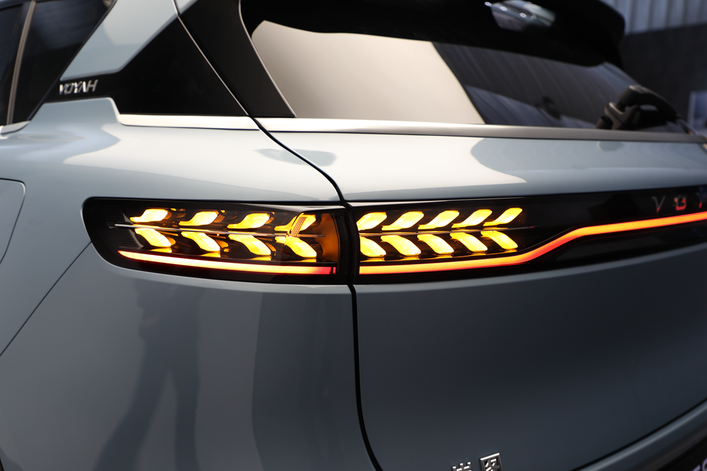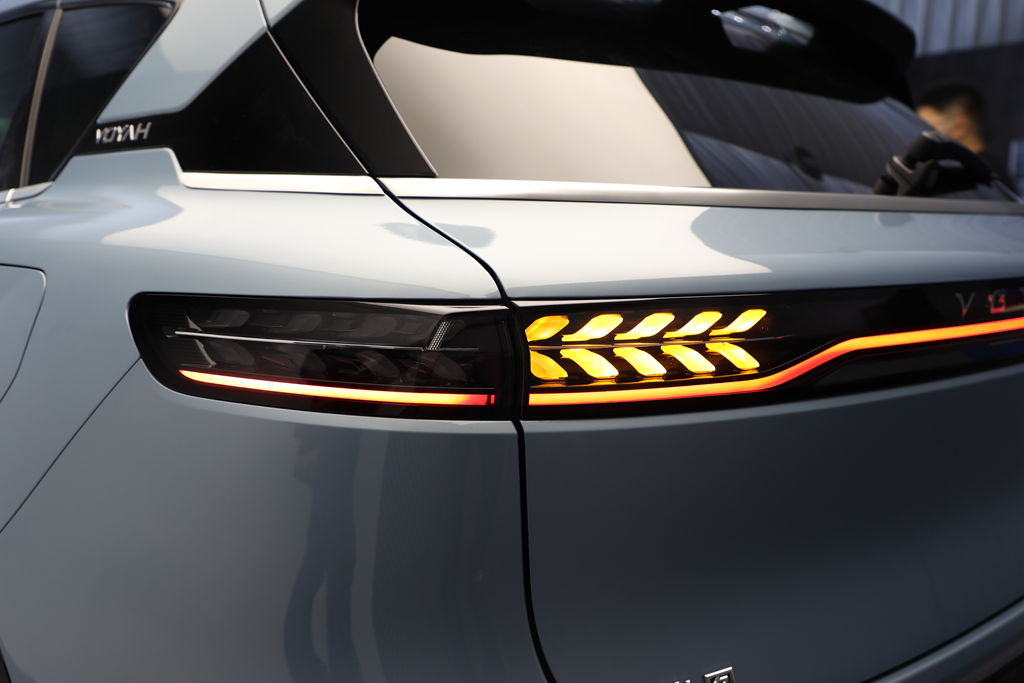 车尾的设计相比前脸要简洁许多,整体造型以圆润为主,但不乏细节设计。小起伏的贯穿式的灯组十分新颖,像一座小桥一样连接左右两侧。“小桥”上方搭载了“VOYAH”的英文标识。转向灯采用动态流水的效果,同时灯组内可以看到设计师的小心思。“鱼骨”式的灯组像极了岚图的logo,从里向外逐一点亮。