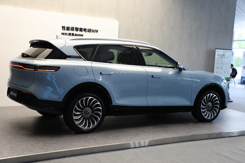 长轴距是新能源车型侧面的典型特征,定位于中大型SUV的岚图FREE,车侧采用了游艇的设计理念,整体线条优雅,过渡流畅。车身尺寸方面,长宽高分别为4905/1950/1660mm,轴距为2960mm。D柱上“VOYAH”的英文标识是岚图的英文名,源于“Voyage航行”,象征着探索和征服大海,映衬了岚图FREE采用游艇的设计。