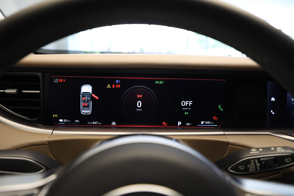 液晶仪表盘的便利性没得挑,但同样存在缺陷。虽然方向盘支持上下前后四项调节,但方向盘上方的左右角会挡住液晶仪表盘的显示(三联屏处于最高状态),但当把车辆的驾驶模式调整至运动,三联屏下降后,就不存在方向盘遮挡液晶仪表盘的状态,使用中一定要注意。