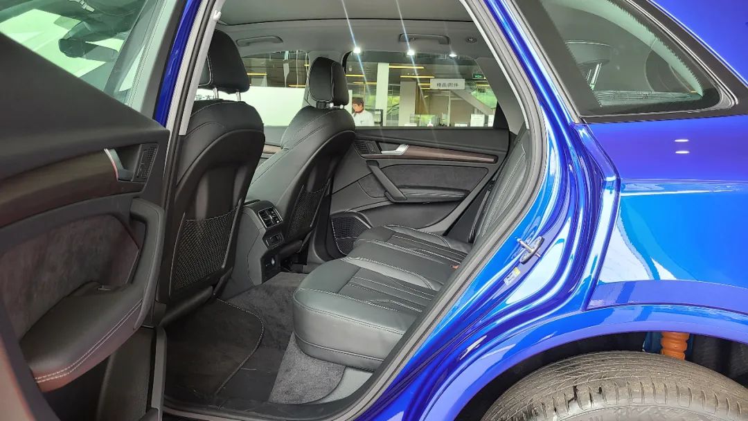 侧面采用波浪式腰线设计搭配轻量化门槛饰条(高配标配踏板)、20英寸奥迪Sport轮毂,尾部拥有3种动画效果的全新一体式数字OLED尾灯,配以贯穿式装饰条与全新运动后保险杠。关于新车的造型设计大嘴多提一嘴,一定要选黑化套件,真的是香!搭配我们本期实拍的蓝色车身,效果很出众。